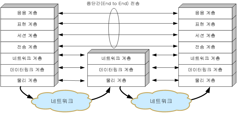 - SDU(Service Data Unit): N+1계층에 의해서 N계층과 N-1계층으로 투명하게 전달되는 사용자 데이터